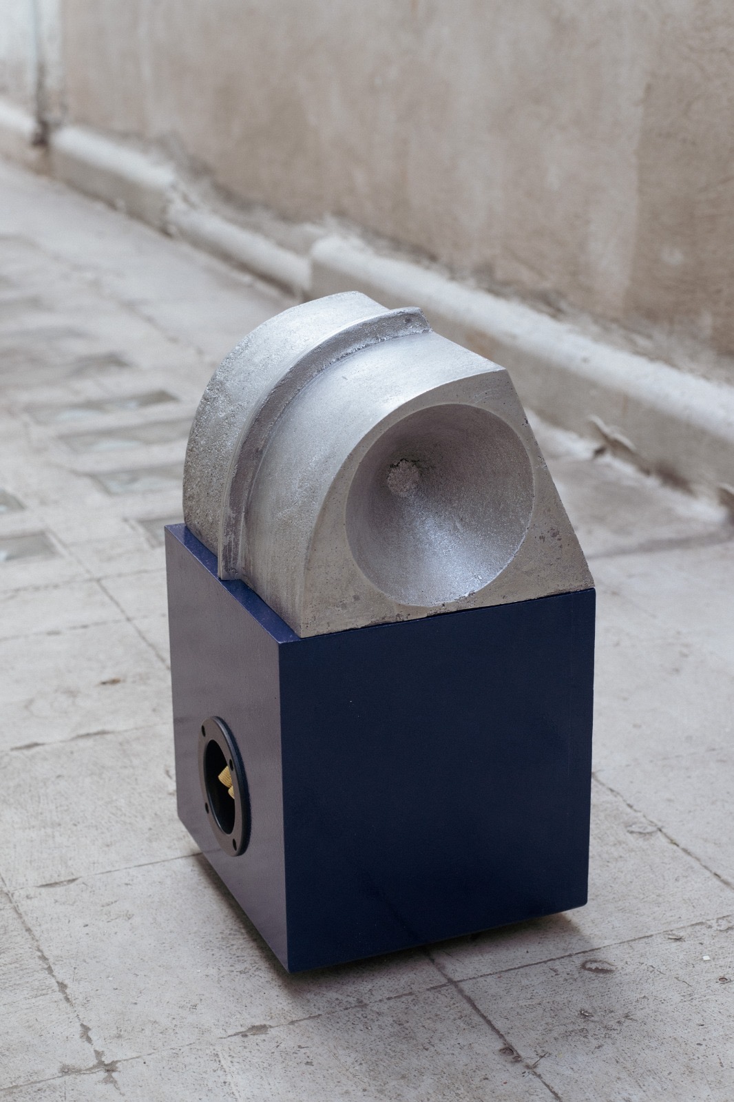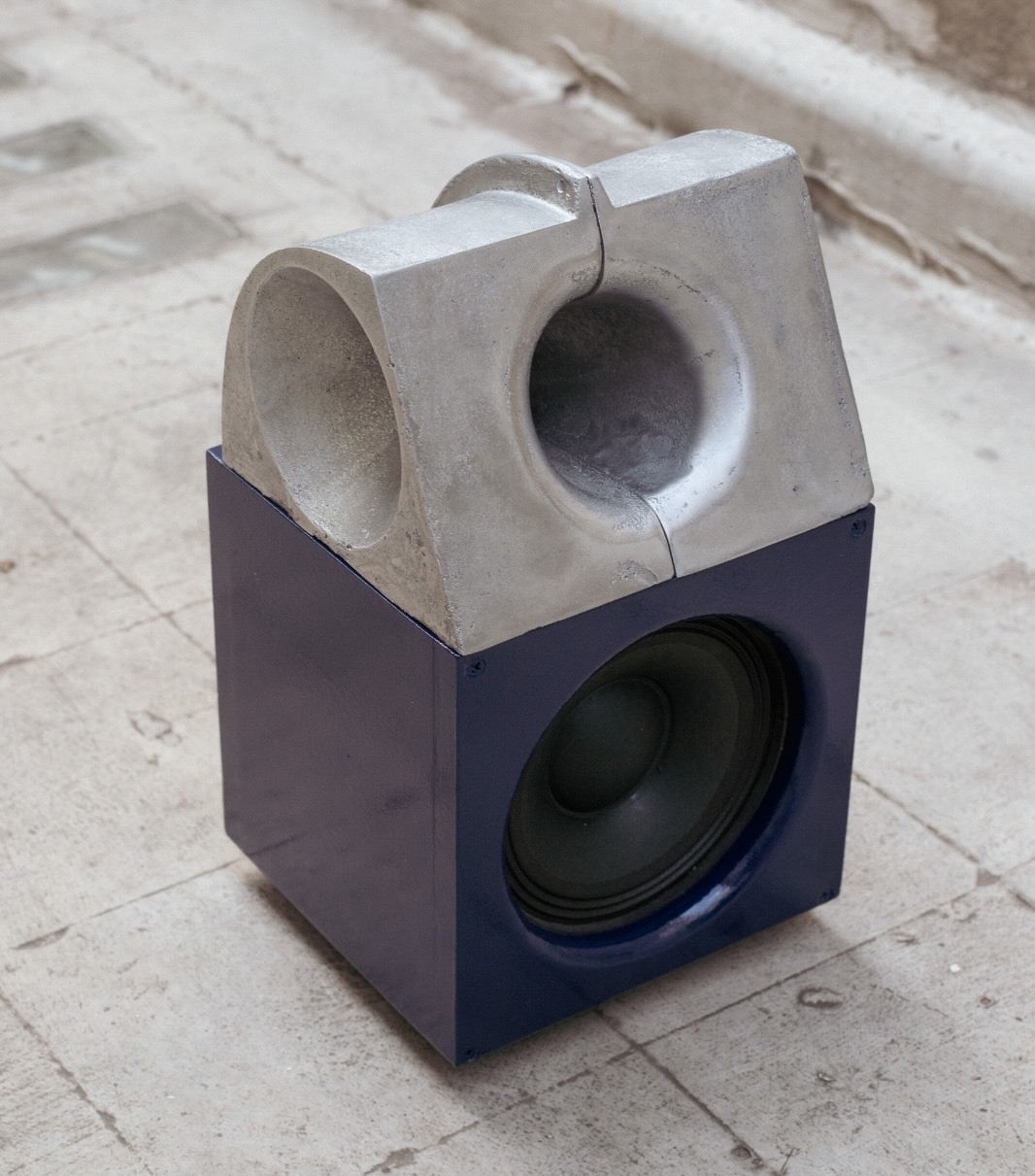 Cast aluminum, painted MDF, woofer, tweeter driver, interior speaker components