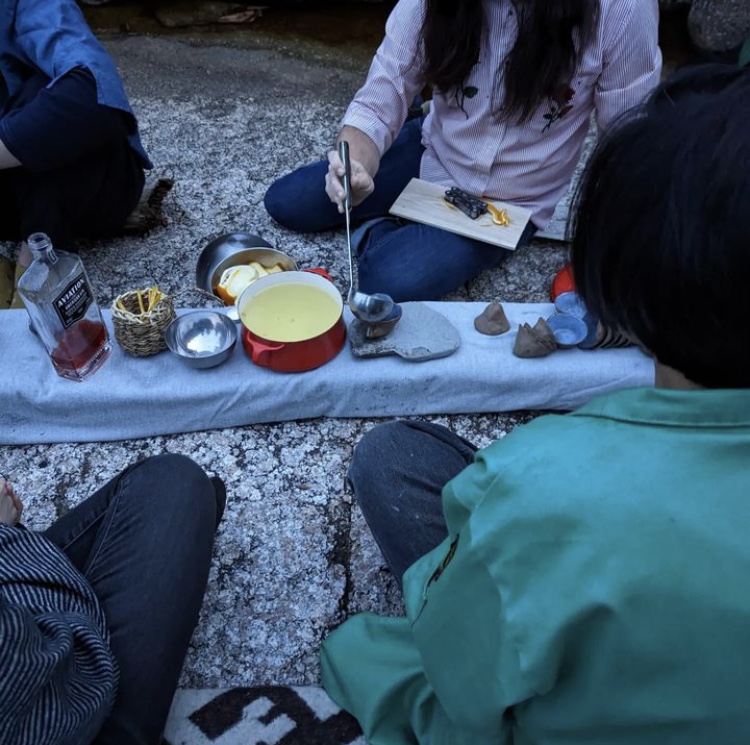 Caution Slippery When W(h)et was a project that took place at Haystack School Open Studio Residency in June of 2023. The bar served negroni cocktails and sprucetip/orange-rind tea in small handmade ceramic cups (keepsakes for Open Studio residents and participants) at a makeshift bar on the rocks beside Haystack School in Deer Isle, Maine. Over a seated bar, beverages were exchanged for “a thought” that patrons of the bar hadn’t previously shared during the residency duration.